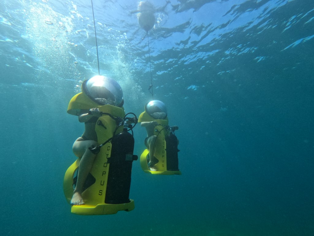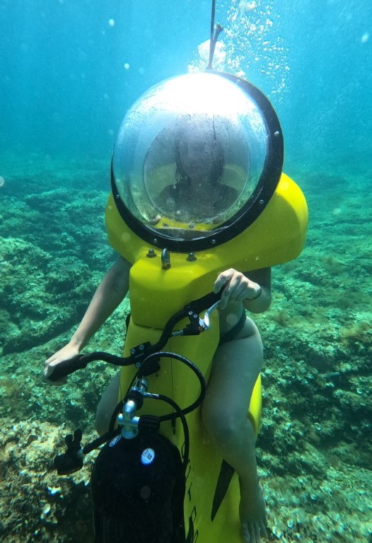 This is an adventurous and exciting way to explore the underwater world with an environmentally-friendly diving scooter operated only by an electric motor.