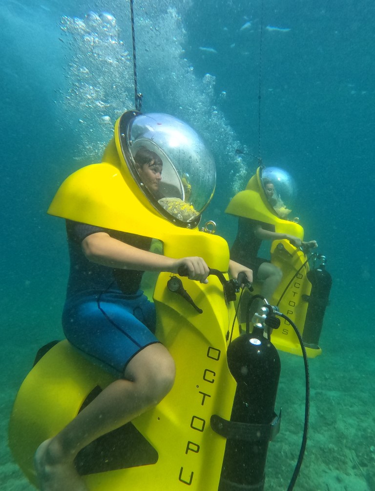 Mini Sub guided by a professional dive master, others can have fun in kayaks